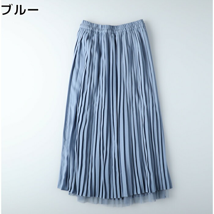 プリーツ面はすそからチュール素材がのぞくオトナかわいいデザイン。